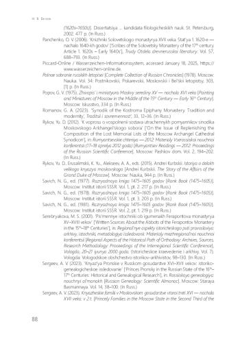 19. Белов Н. В. Новые данные о книжниках XVI в. (по материалам синодика Троице-Сергиева монастыря 1575 г.) // Герменевтика древнерусской литературы. М.: ИМЛИ РАН, 2025. Сб. 24. С. 590-614.