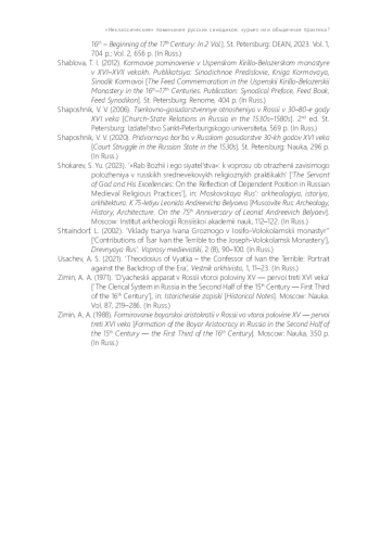 86. Шапошник В. В. Церковно-государственные отношения в России в 30-80-е годы XVI века. 2-е изд., испр. СПб.: Изд-во С.-Петерб. ун-та, 2006. 569 с.