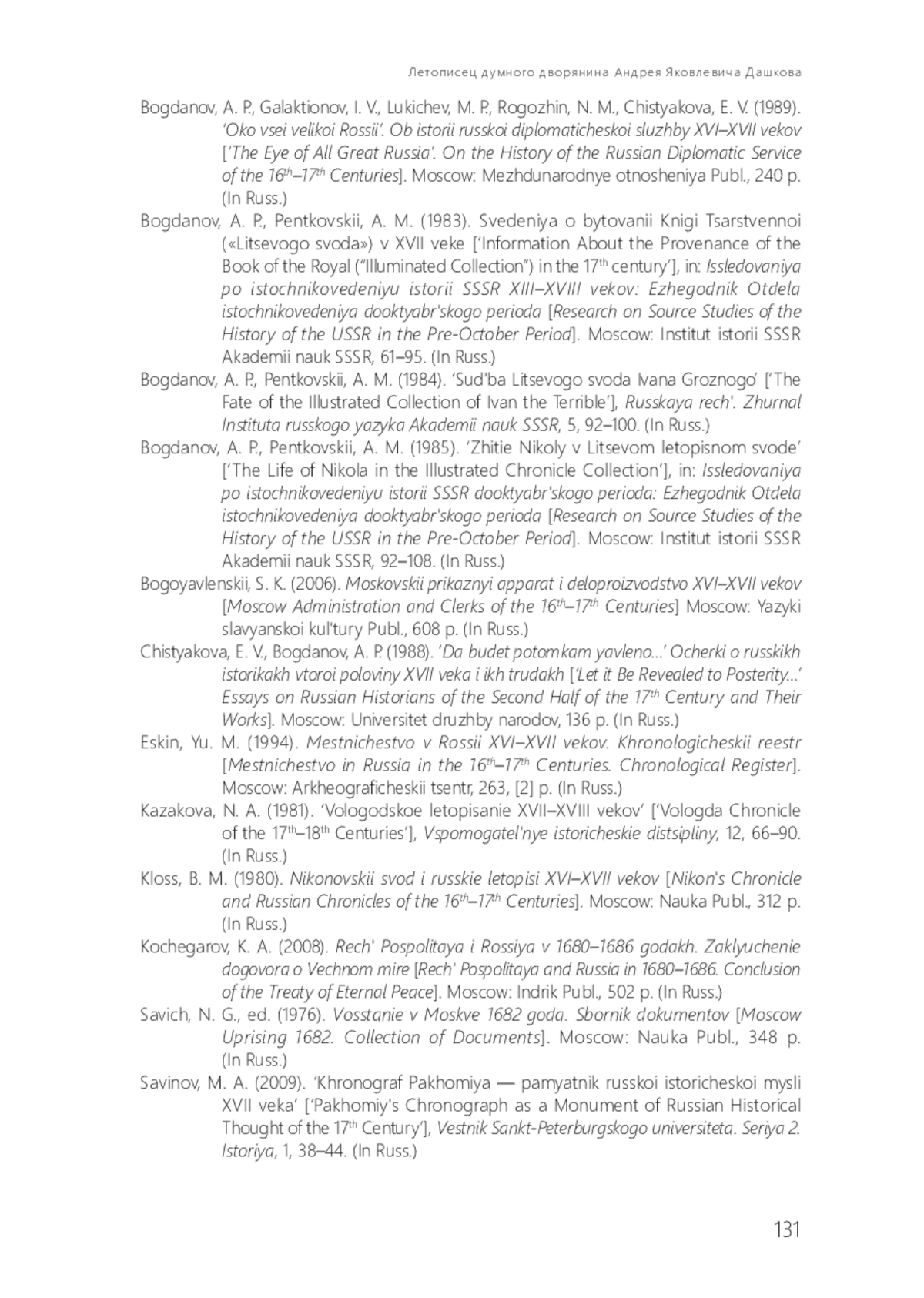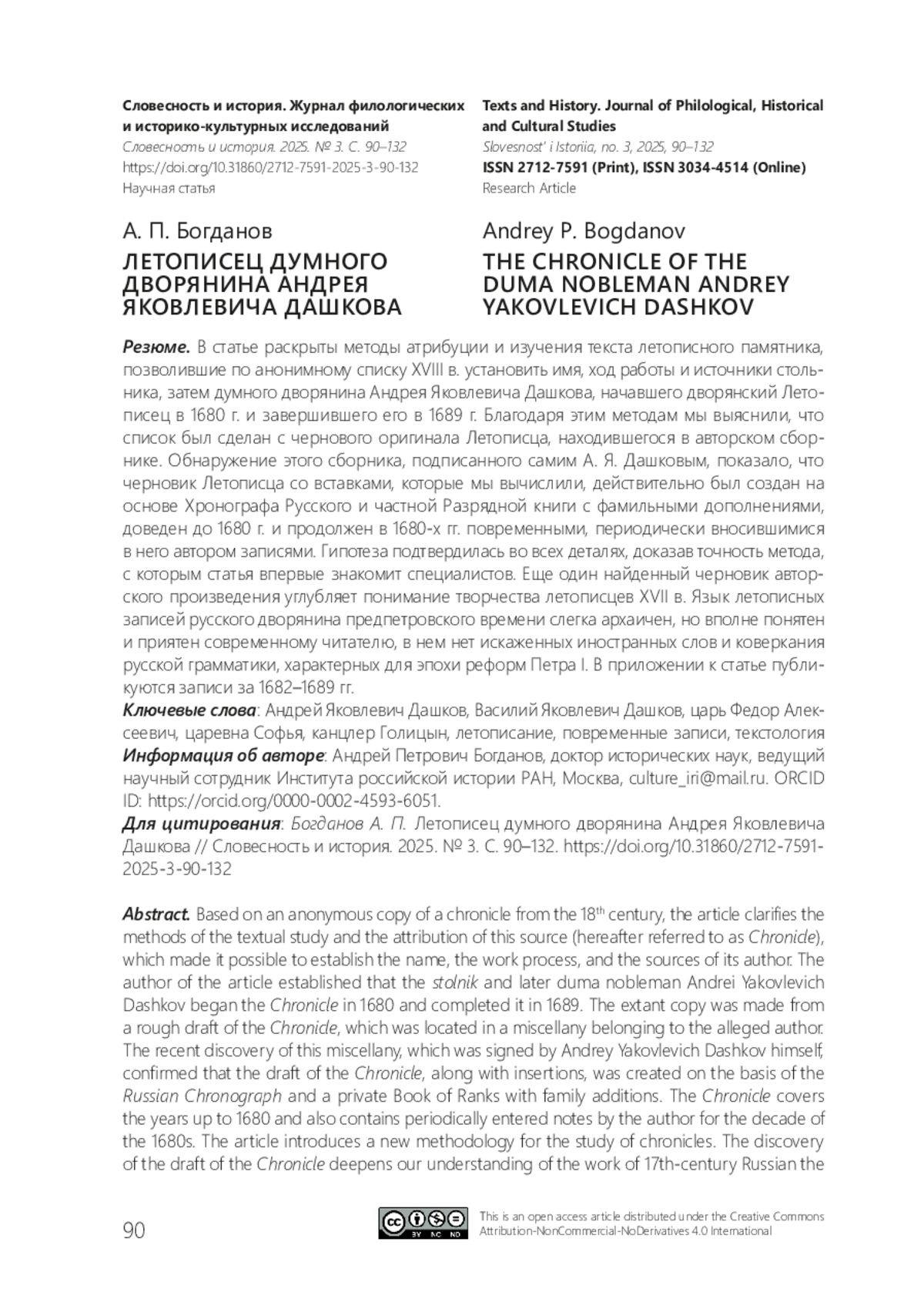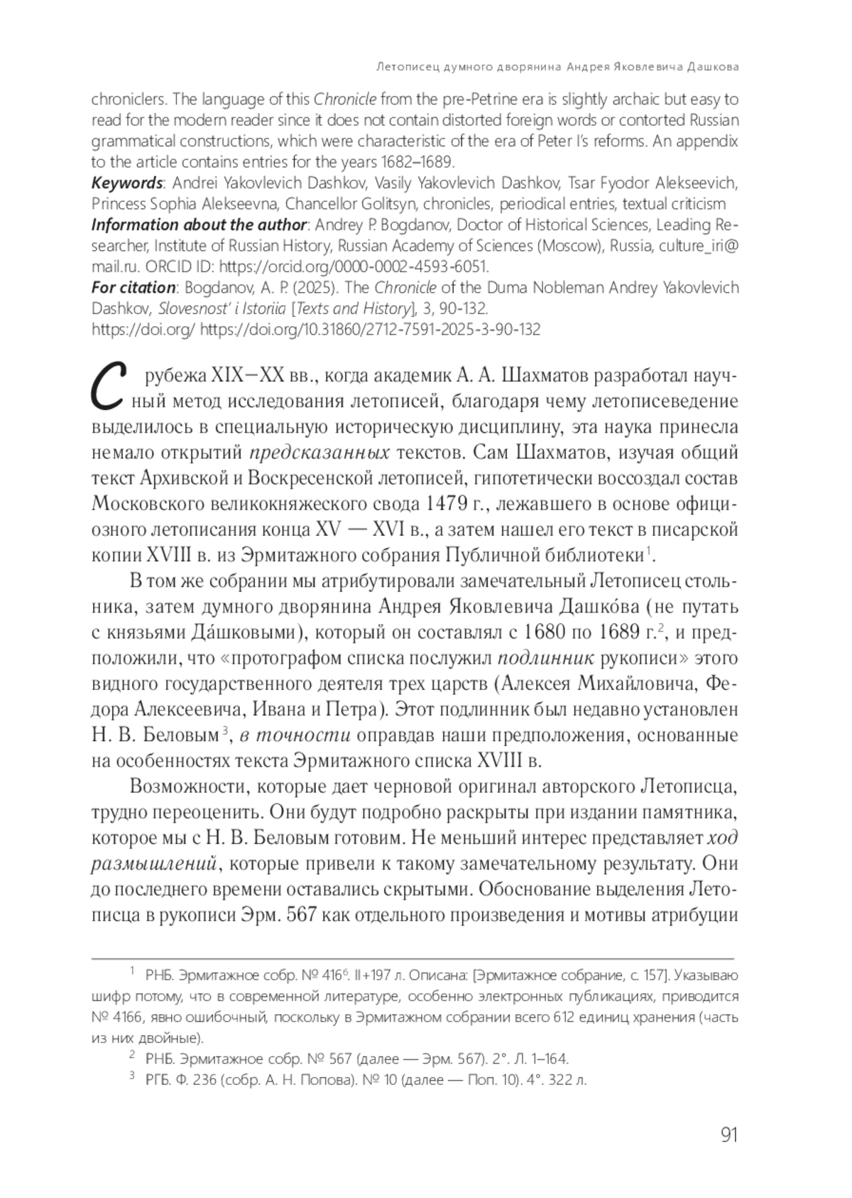 БОГДАНОВ А. П. ЛЕТОПИСЕЦ ДУМНОГО ДВОРЯНИНА АНДРЕЯ ЯКОВЛЕВИЧА ДАШКОВА // СЛОВЕСНОСТЬ И ИСТОРИЯ. 2025. № 3
