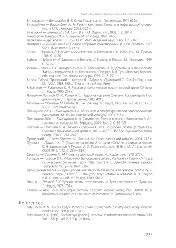 22. Пильщиков И. А. Символика Элизия в поэзии Батюшкова // Антропология культуры. М.: Вердана, 2004. Вып. 2. С. 86-123.