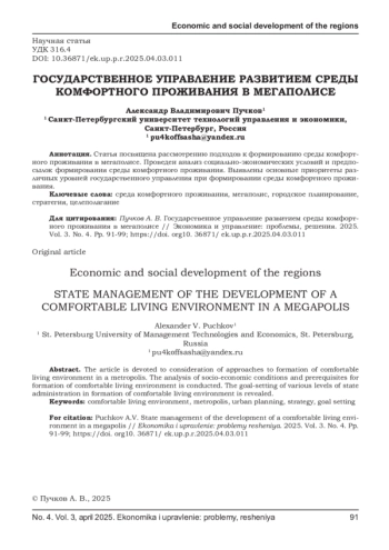 4. Горулев Д. А., Пучков А. В. Управление рисками формирования среды комфортного проживания в мегаполисе // Страховое дело. - 2024. - № 10. - С. 22-30. EDN: KJYQNX