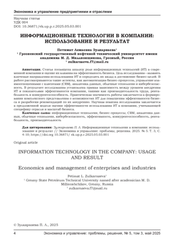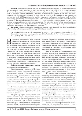 Статья посвящена анализу роли информационных технологий (ИТ) в современной компании и оценке их влияния на эффективность бизнеса.