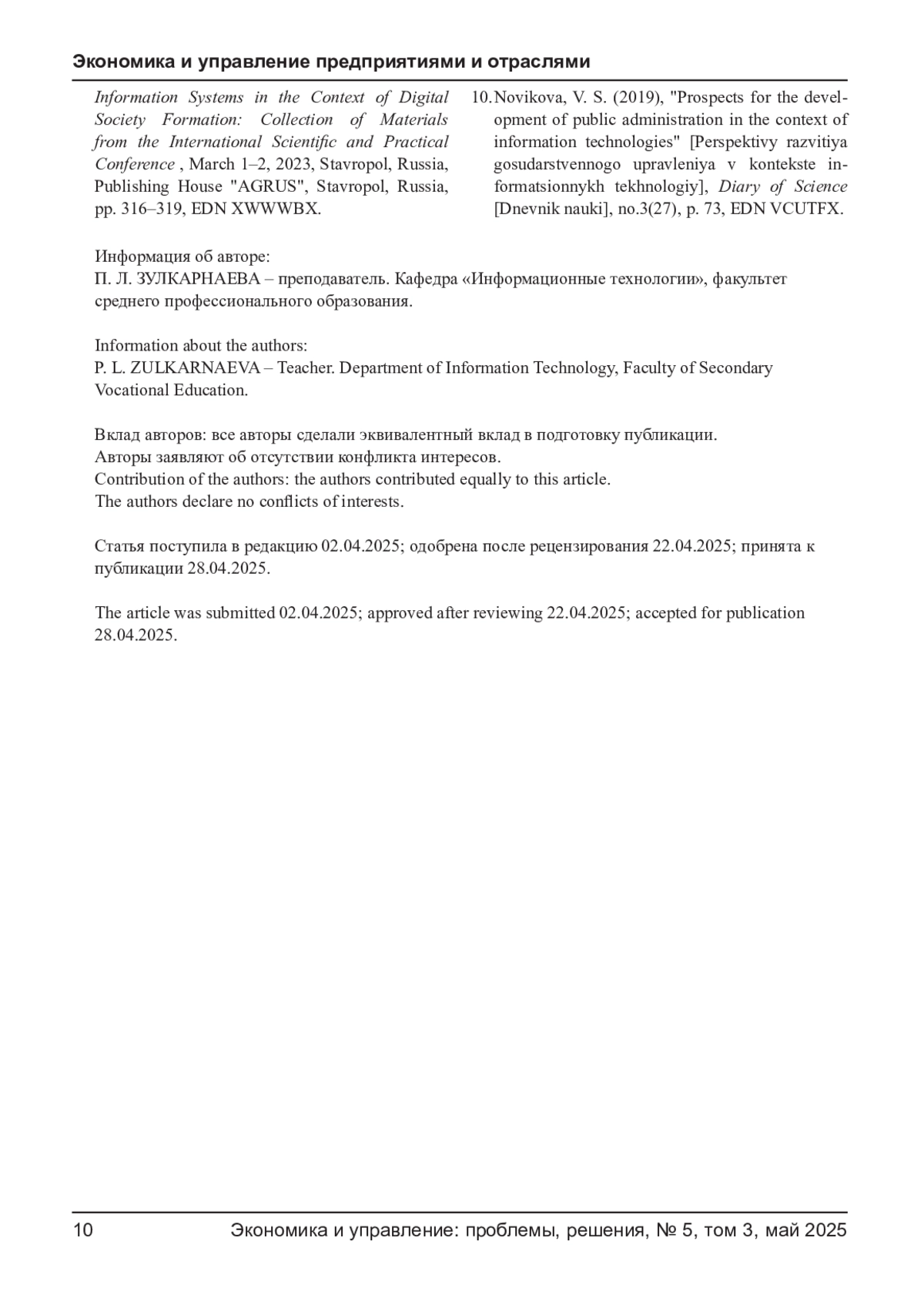 10. Новикова В. С. Перспективы развития государственного управления в контексте информационных технологий // Дневник науки. - 2019. - № 3(27). - С. 73. EDN: VCUTFX