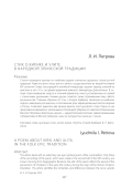 Статья посвящена одному из наиболее редких эпических духовных стихов устной традиции. Известны всего лишь три его записи, осуществленные во второй половине XIX столетия. Сюжет, восходящий к житийной литературе, отразил период гонений на христиан в нач. IV в., во время правления римского императора Диоклетиана. В основе статьи выявление сходств и отличий вариантов стиха и установление его связей с эпическими духовными стихами других сюжетов, также отразившими тему святого мученичества. Главным образом это стих о Егории Храбром. Несмотря на крайнюю скудость материала для анализа, сопоставление трех зафиксированных текстов «Кирика и Улиты» позволяет выделить две разные версии этого духовного стиха. Одна из них представлена вариантом, записанным в Олонецкой губернии от известного былинщика Василия Петровича Щеголенка, другая — двумя близкими текстами, зафиксированными собирателями в Вятской губернии, один из которых был записан с пения.