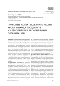 ВВЕДЕНИЕ. Европейский интеграционный проект, долгое время считавшийся выдающимся образцом восстановления прочного мира на континенте и залогом его процветания, все больше сталкивается с экзистенциальными рисками. Прецеденты выхода государств из европейских региональных организаций – Европейского союза (далее – ЕС, Евросоюз) и Совета Европы – заставляют критически переосмыслить их опыт и перспективы дальнейшего существования. Указанные события, при всей их уникальности, каждое по-своему пошатнули привычную архитектуру общеевропейского сотрудничества и заставили обратиться к углубленному изучению политических и правовых моделей выхода государств из европейских региональных организаций.