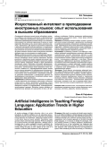 В современной педагогике высшей школы наблюдается активное внедрение искусственного интеллекта в образовательный процесс. Отдельные преподаватели, факультеты и целые университеты разрабатывают различные подходы к его активному использованию, от отдельных упражнений до курсов на основе нейросетей. Несмотря на это, многие вопросы остаются спорными и нерешенными. При широком использовании нейросетей и мобильных приложений возникает проблема с их применением для достижения педагогических результатов при недостаточной изученности его влияния на качество языковой подготовки. На этапе активного освоения нового инструмента необходимо обобщать опыт его использования на мировом уровне.