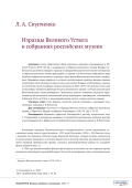 Статья представляет обзор комплекса изразцов, произведенных в Великом Устюге в XVIII-XIX вв. и находящихся в собраниях российских музеев. Впервые публикуются документы передачи изразцов из фондов Великоустюгского музея-заповедника в собрания российских музеев, фотографии из архива А. В. Филиппова, изображения ряда музейных предметов коллекции изразцов и фото фонда Великоустюгского музея-заповедника. Приведены новые сведения из истории комплектования музейных фондов, впервые установлено место бытования ряда печных комплектов. Впервые опубликованы изразцы из комплектов музея, атрибуция которых состоялась в 2023-2024 гг. В качестве источников использованы материалы Великоустюгского центрального архива и учетная документация Великоустюгского музея-заповедника. Полученные данные позволяют расширить представление об уникальной региональной школе изразцового производства, сложившейся в Великом Устюге в XVIII в. и занимающей важное место в истории русского изразца.
