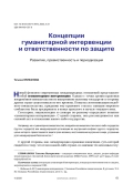 Концепции гуманитарной интервенции и ответственности по защи те важны в связи со значимостью последствий применения в между народных отношениях (боснийская операция НАТО, интервенция в Ираке, косовские бомбардировки, агрессия в Ливии и т. д.). В области предметного поля конкретные военные вмешательства и концепции рассматриваются изолированно друг от друга. В статье гуманитарная интервенция и ответственность по защите представлены в син тетическом единстве эволюции и дана периодизация их преемствен ного развития.