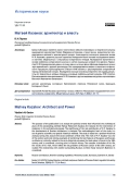 Целью публикации является анализ политических событий, повлиявших на творческие замыслы выдающегося архитектора Матвея Федоровича Казакова, а также причин вмешательства государственных деятелей в архитектурный процесс. Анализируется значимость реального вклада М. Ф. Казакова в развитие русского зодчества. Методологической основой исследования является комплекс общенаучных и специальных исторических методов. Исследование выполнено на основе проблемно-исторического анализа с учетом социальных условий того времени. Творчество М. Ф. Казакова явилось одним из самых ранних и самых ярких образцов соединения лучших черт европейской и русской архитектуры. Оно непосредственно связано с социально-историческими процессами, происходившими в России XVIII столетия, и рассматривается в переломный период отечественной истории. Исследуются сложные жизненные перипетии его судьбы, результаты его творчества, в которых отражены ключевые проблемы русской культуры XVIII столетия. Рассматриваются взаимоотношения М. Ф. Казакова с другим выдающимся русским архитектором Василием Ивановичем Баженовым.