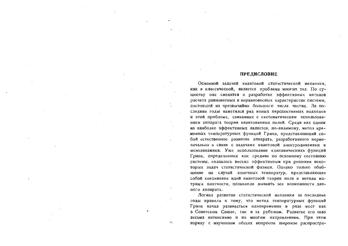 Этот метод — так называемый метод температурных квантовых функций Грина — представляет собой синтез некоторых идей статистической физики и квантовой теории поля. Он позволяет единым образом рассматривать как равновесные, так и неравновесные процессы и удобен как для исследования общих свойств систем многих тел, так и для приближенного решения ряда конкретных задач.