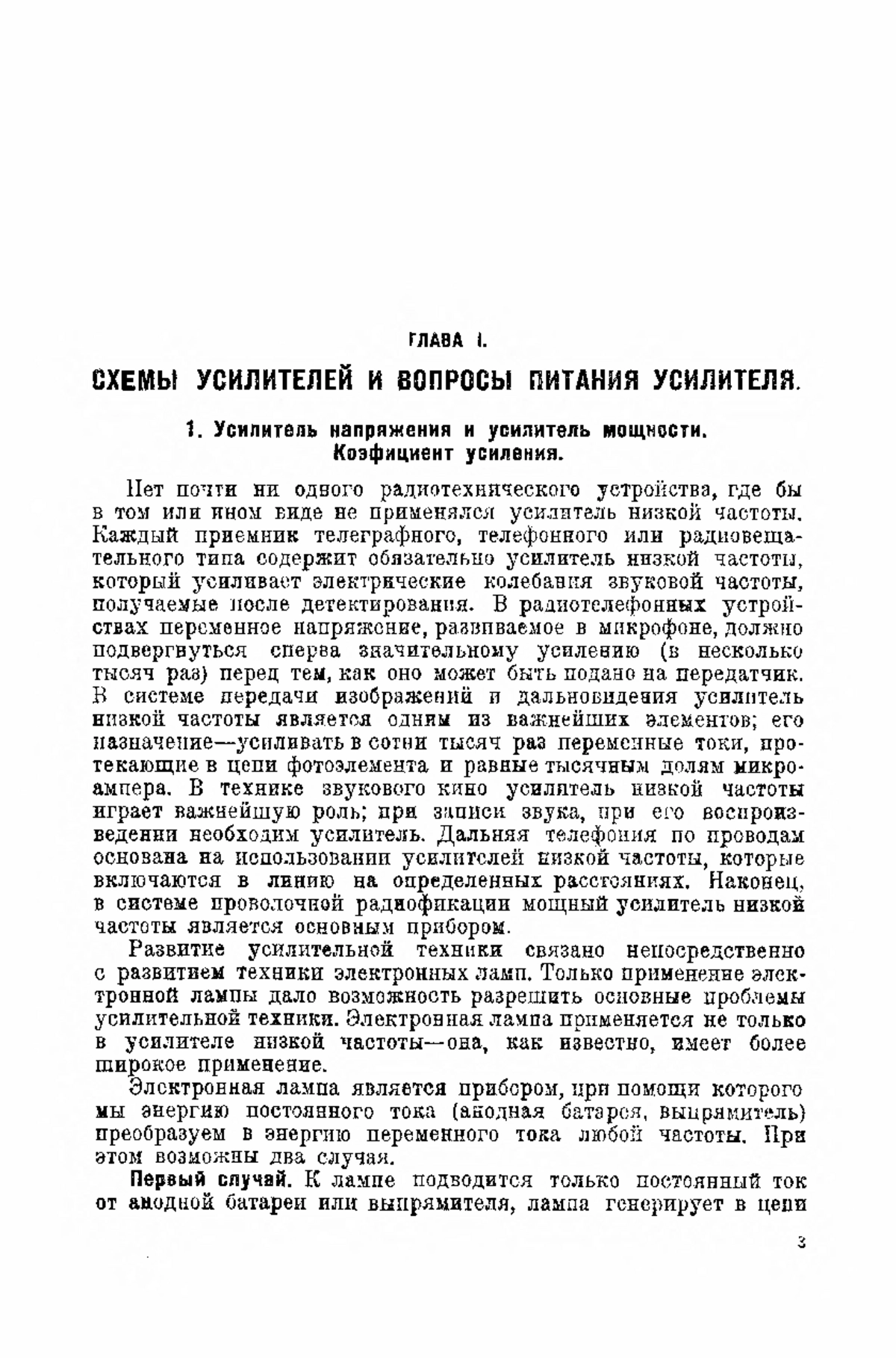 «Нет почти ни одного радиотехнического устройства, где бы в том или ином виде не применялся усилитель низкой частоты. Каждый приемник телеграфного, телефонного или радиовещательного типа содержит обязательно усилитель низкой частоты, который усиливает электрические колебания звуковой частоты, получаемые после детектирования. В радиотелефонных устройствах переменное напряжение, развиваемое в микрофоне, должно подвергнуться сперва значительному усилению (в несколько тысяч раз) перец тем, как оно может быть подано на передатчик…»