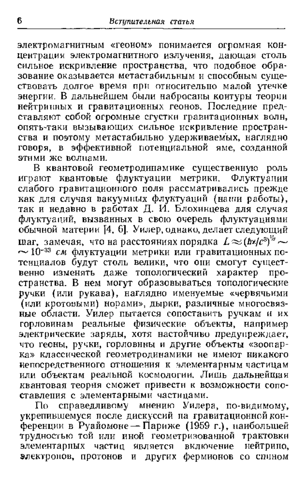 Основное внимание уделяется попытке объединенного описания гравитационного и электромагнитного полей (геометродинамика), включающего топологические обобщения; обсуждаются также такие актуальные вопросы, как взаимные превращения гравитации и элементарных частиц, роль нейтрино и гравитационных волн в общем балансе энергии во Вселенной.