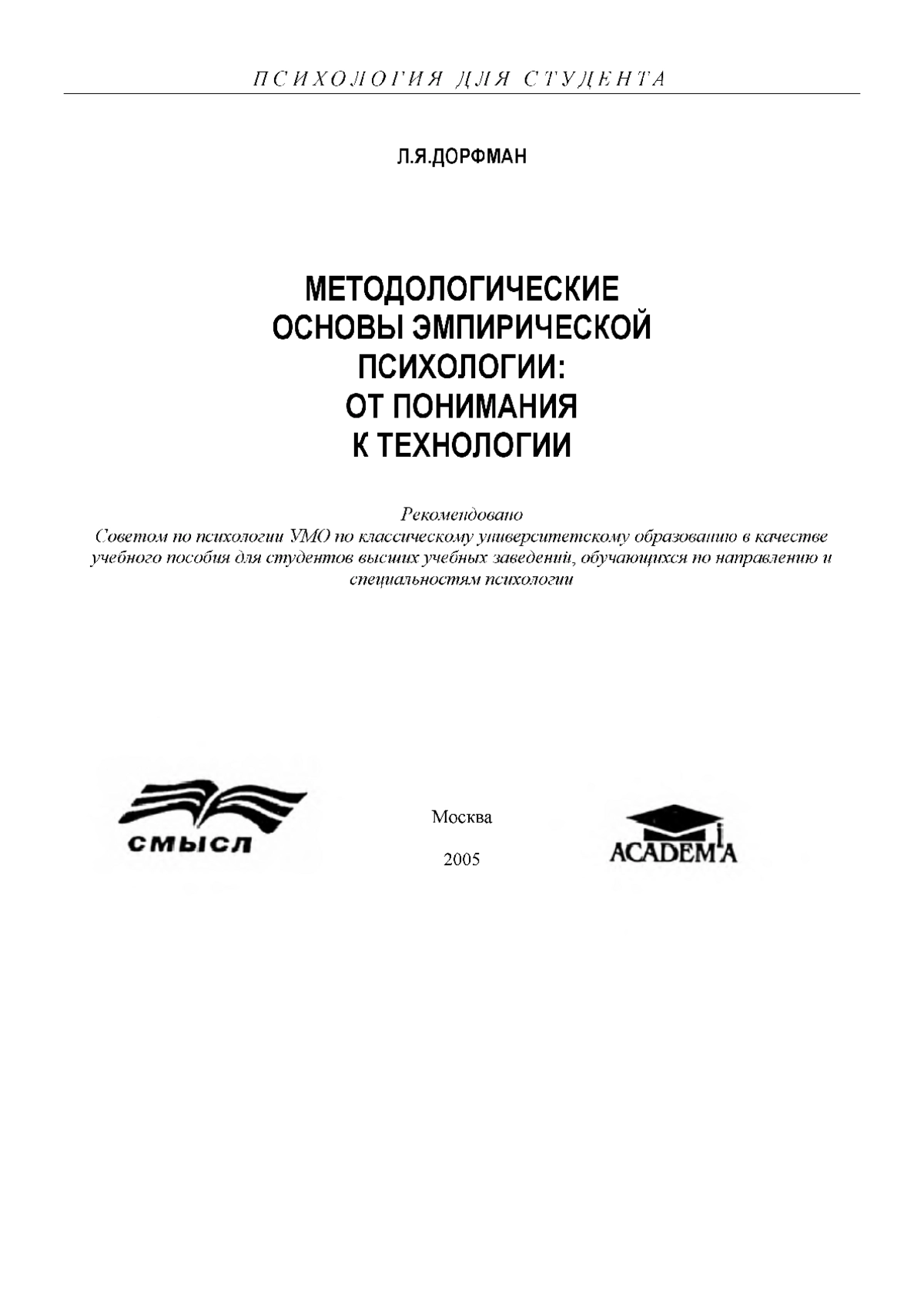 Представлены фундаментальные идеи, объясняющие своеобразие эмпирической психологии как науки и отличающие ее от априорной психологии, с одной стороны, и практической психологии с другой. Особое внимание уделено научной технологии: методу, особенностям исследовательского мышления, организации эмпирического знания и его производству. Изложены основания, содержание основных методов эмпирического исследования наблюдения и экспериментирования, показано их своеобразие.