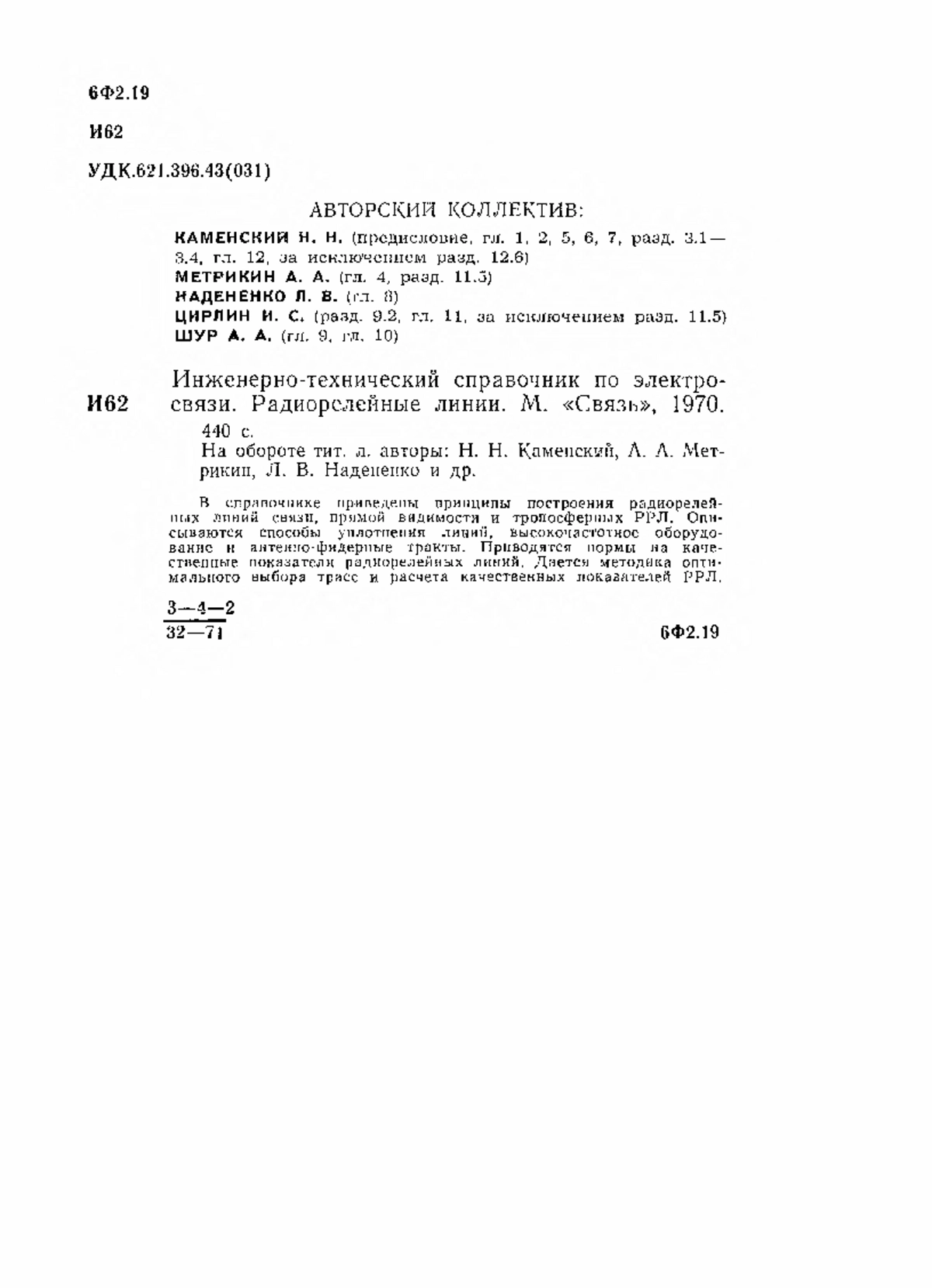 Книга: Инженерно-технический справочник по электросвязи. Радиорелейные линии
