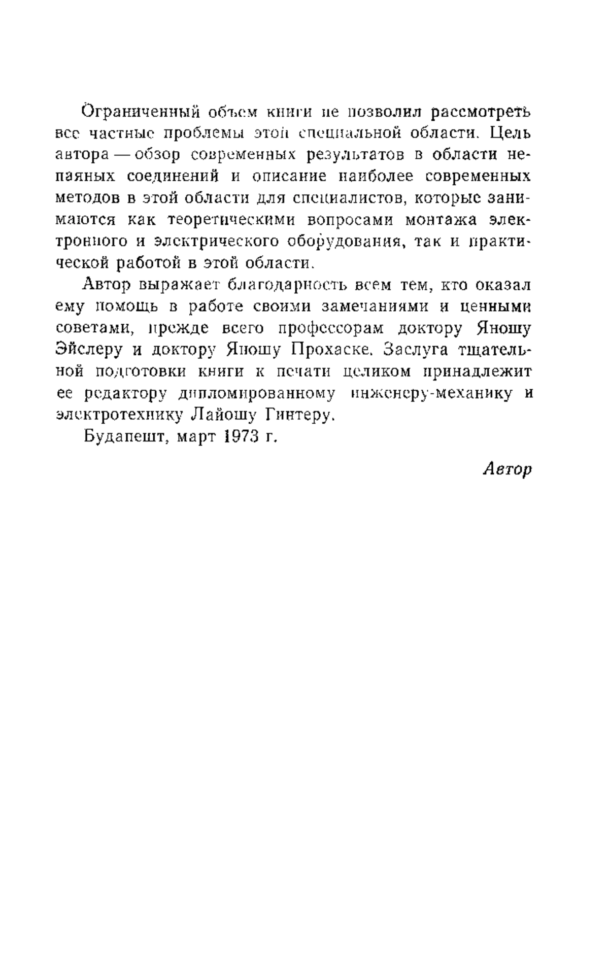 В книге рассмотрены типы и методы непаяных соединений от классических (скручивание, зажим, соединение заклепками) до современных (обжатие, накрутка), которые недостаточно освещены в отечественной литературе. Кроме того, в книге приведено краткое изложение теории образования непаяного соединения. Наиболее подробно автор рассматривает методы обжатия и накрутки, которые в настоящее время находят очень широкое применение в зарубежной электронике. Книга рассчитана на инженерно-технических работников, занимающихся монтажом электрической и электронной аппаратуры.