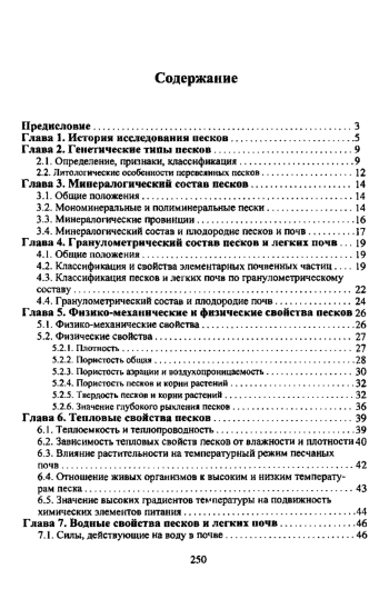 В книге рассмотрены особенности песков как осадочной породы, разнообразные формы песчаного рельефа, гидрогеологические условия, формирование растительного и почвенного покровов по природным зонам. Дана характеристика морфологических, физических, химических свойств и особенностей водного режима песчаных почв Рассмотрена история песчаных почв в плейстоцене и голоцене, установлен возраст почв в связи с фазами дефляции, их генезис и эволюция Предложена классификационная схема песчаных почв Рассмотрены природные условия некоторых песчаных массивов в аридных областях.