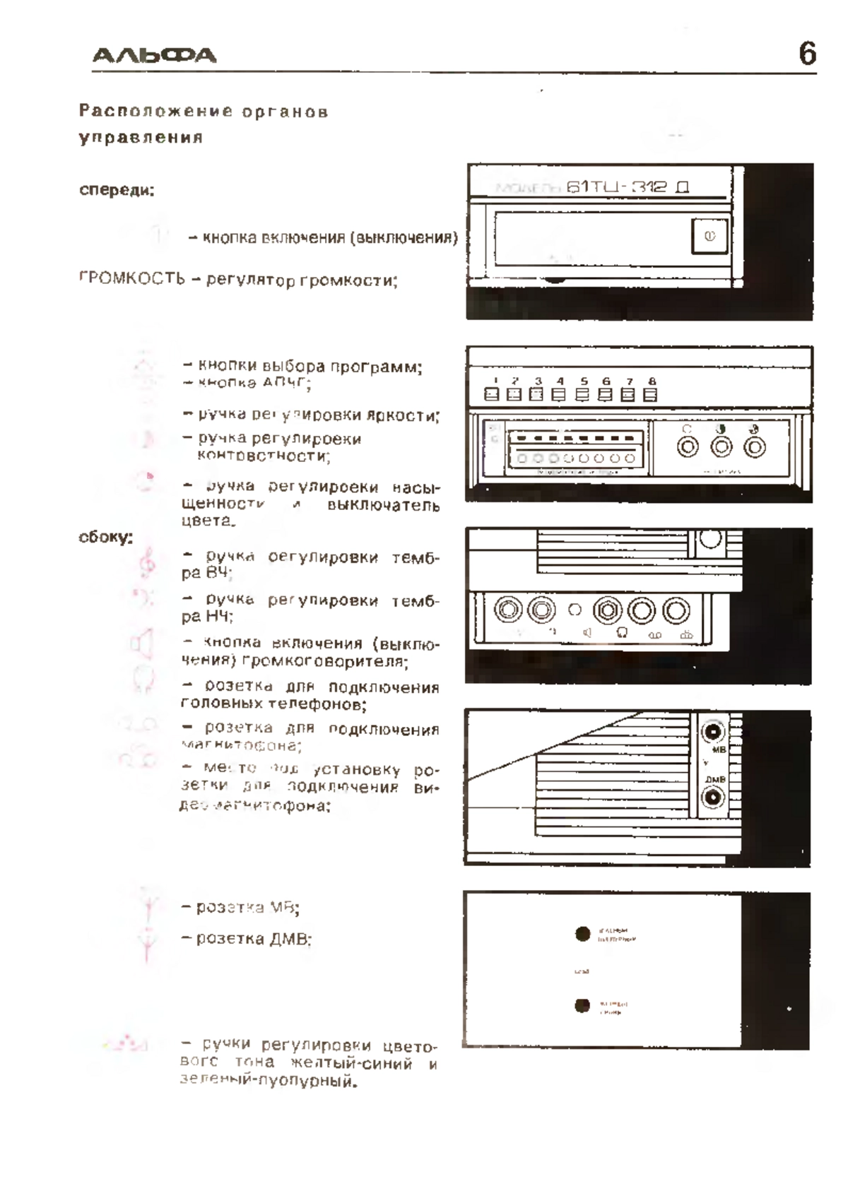 “Альфа 61ТЦ-312Д” - унифицированный стационарный телевизор цветного изображения модульной конструкции на полупроводниковых приборах и интегральных микросхемах соответствует требованиям ГОСТ 18198-85 и 2.025.007 ТУ. Телевизор предназначен для приема телевизионных передач цветного и черно-белого изображения в метровом и дециметровом диапазонах волн, обеспечивает нормальную работу без применения стабилизатора напряжения сети при колебаниях питающего напряжения в пределах от 170 до 240 В. Руководство по эксплуатации телевизора цветного изображения 61ТЦ—312Д. Даны технических характеристики и схемы модулей и плат телевизора. Нормативное производственное практическое издание.