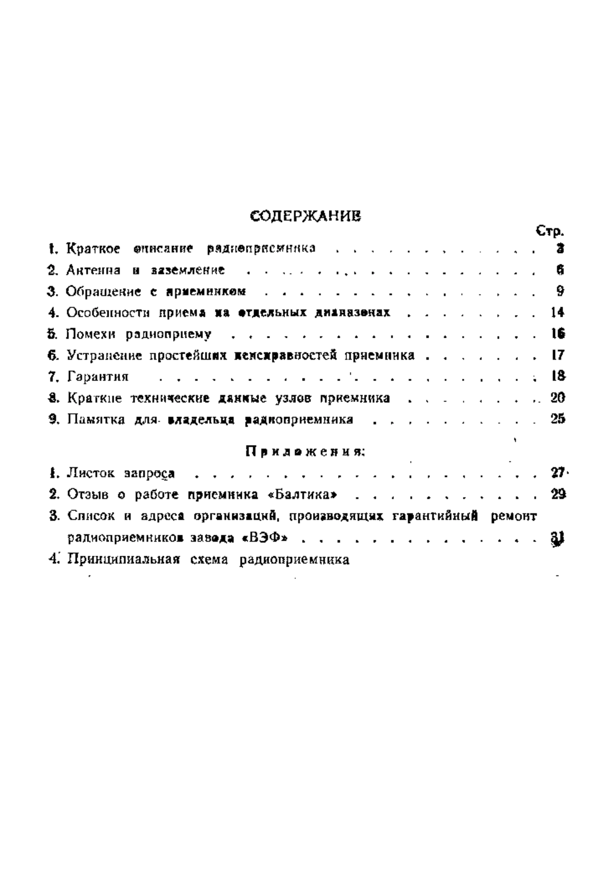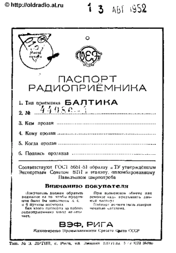 Радиовещательный приемник «БАЛТИКА», производства завода «ВЭФ», представляет собой семиламповый всеволновый супергетеродин, с питанием от сети переменного тока. Радиоприемник «БАЛТИКА» предназначен для громкоговорящего приема радиостанций коротковолнового, средневолнового и длинноволнового диапазонов, а также для воспроизведения граммзаписи (с помощью звукоснимателя и проигрывателя). Приемник имеет достаточно хорошую чувствительность и избирательность, что позволяет получить качественный прием большого количества радиостанций. Данная инструкция объяснит вам как и что работает в этом устройстве.