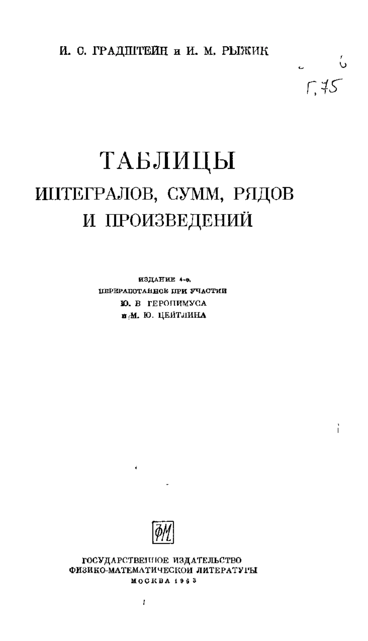 Книга: Таблицы интегралов, сумм, рядов и произведений (4-е изд.)