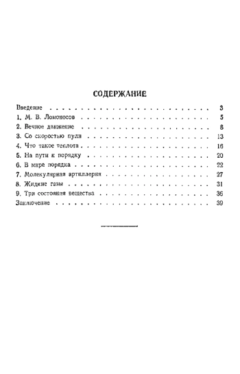Около двух с половиной тысяч лет тому назад у человека возникла гениальная догадка о том, что весь окружающий его мир состоит из мельчайших частиц. Одним из первых, кто высказал это предположение, был греческий философ Демокрит, живший за пять веков до нашего летоисчисления. Эти мельчайшие частицы Демокрит считал неделимыми и назвал их поэтому атомами (атом — по-гречески — неделимый). Демокрит думал, что всё многообразие окружающего нас мира вызвано различным движением и различными сочетаниями атомов. В этой книжке рассказывается о главном, неотъемлемом свойстве невидимых частиц вещества — об их движении и о связанных с этим свойствах тел.