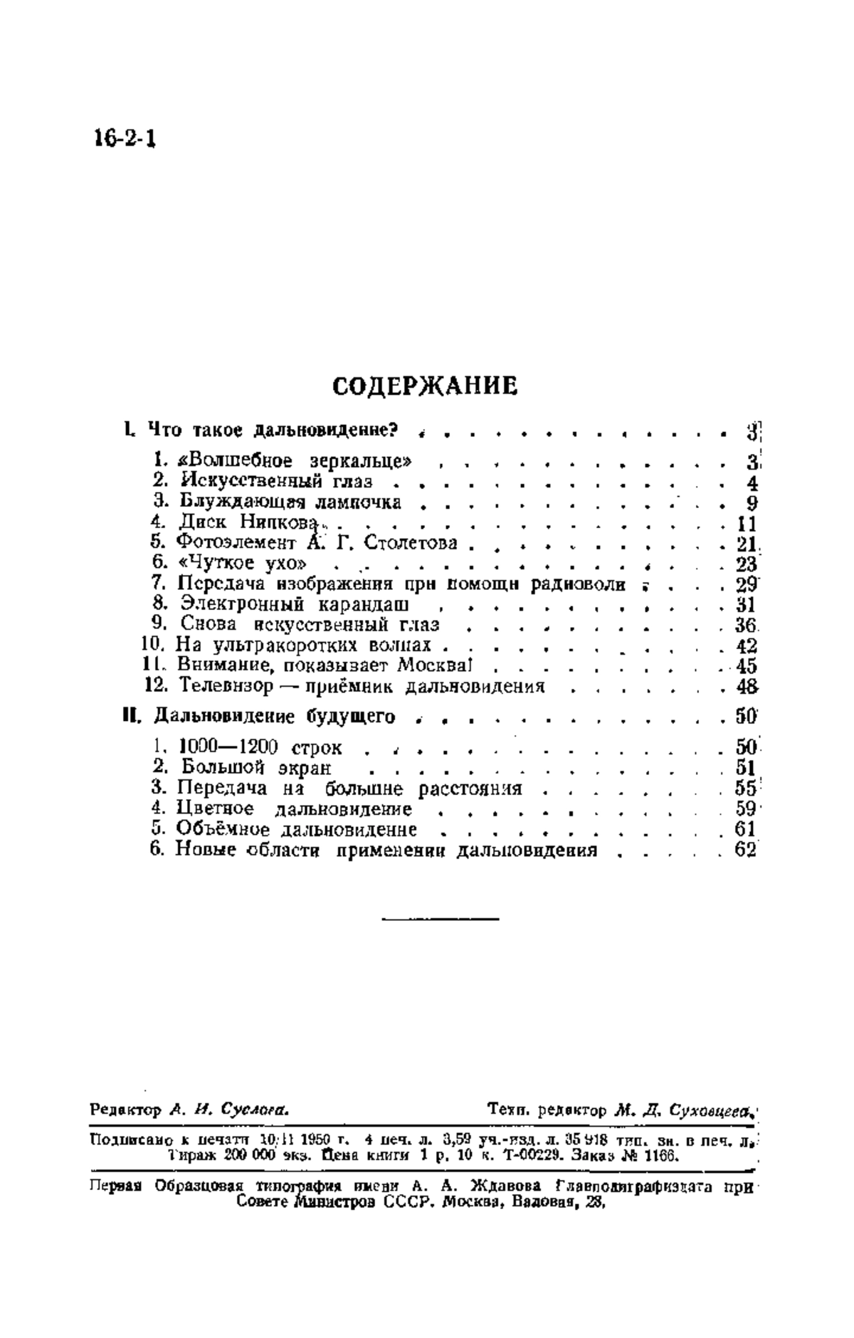 Очень многое из воспетого в сказках стало явью, ещё более величественной, чем сама сказка. Чудесный ковёр стал самолётом, способным поднимать сотни людей и десятки тонн груза. Чуткое ухо превратилось в радио. А волшебное зеркальце… оно тоже уже есть. Это — телевизор, аппарат для передачи изображений на расстояние. По виду он напоминает большой радиоприёмник. Когда гасится свет и включается телевизор, на передней его стенке начинает ярко светиться небольшой прямоугольный экран. Через мгновение зритель переносится в театр…