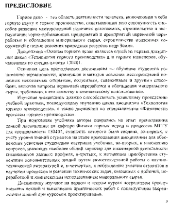 Дисциплина «Основы горного дела» является одной из первых дисциплин цикла «Технология горного производства» для горных инженеров, обучающихся по специальности 130401.