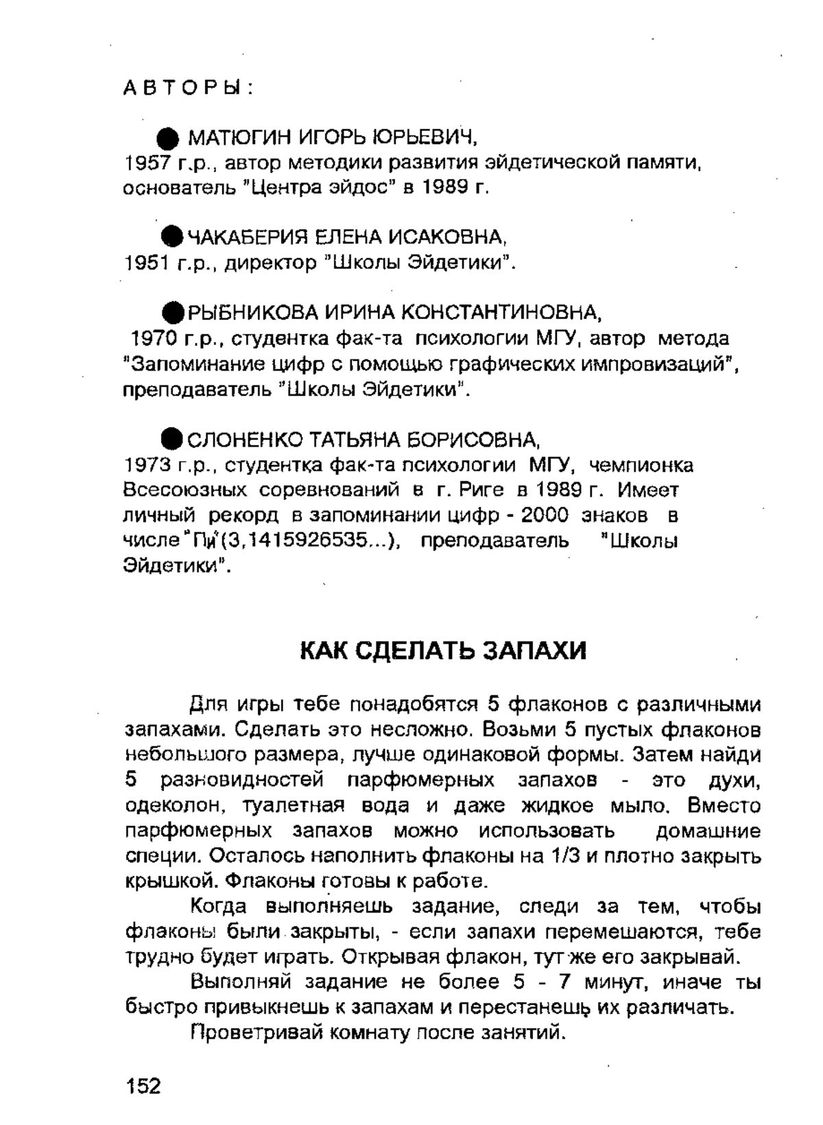 Одно из свойств хорошей памяти - умение быстро забывать ненужное. Это поможет вам и во время экзаменов и во время стрессов, когда появляются травмирующие психику переживания. Методы психокоррекции основаны на резервах образной памяти, которые были выявлены и систематизированы в результате многолетнего опроса детей и взрослых. Ценность методов в том, что многие из них найдены самими детьми. Книга адресуется практическим психологам, педагогам, родителям, детям.