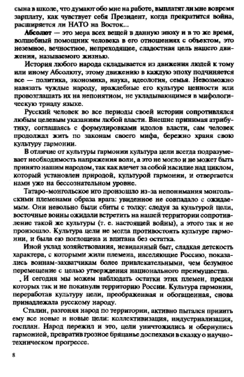 Россия — великая страна. Она обладает громадной территорией, и кладезь ее природных богатств поистине неисчерпаем, в нашей стране есть истинно народная культура — культура, не тронутая ни одной идеологией. Именно благодаря народной культуре мы можем приблизиться к ответам на волнующие любого человека вопросы, там, в житейской мудрости и многовековом опыте человека, следует искать букварь правильных действий, критерии, объясняющие смысл происходящего сегодня. Именно поэтому мне приятно представить книгу С. З. Агранович и И. В. Саморуковой «Гармония — цель — гармония. Художественное сознание в зеркале притчи», где авторы пытаются объяснить происхождение и развитие изначально заданных правил человеческой жизни, которые возникли и продолжают жить в каждом из нас.