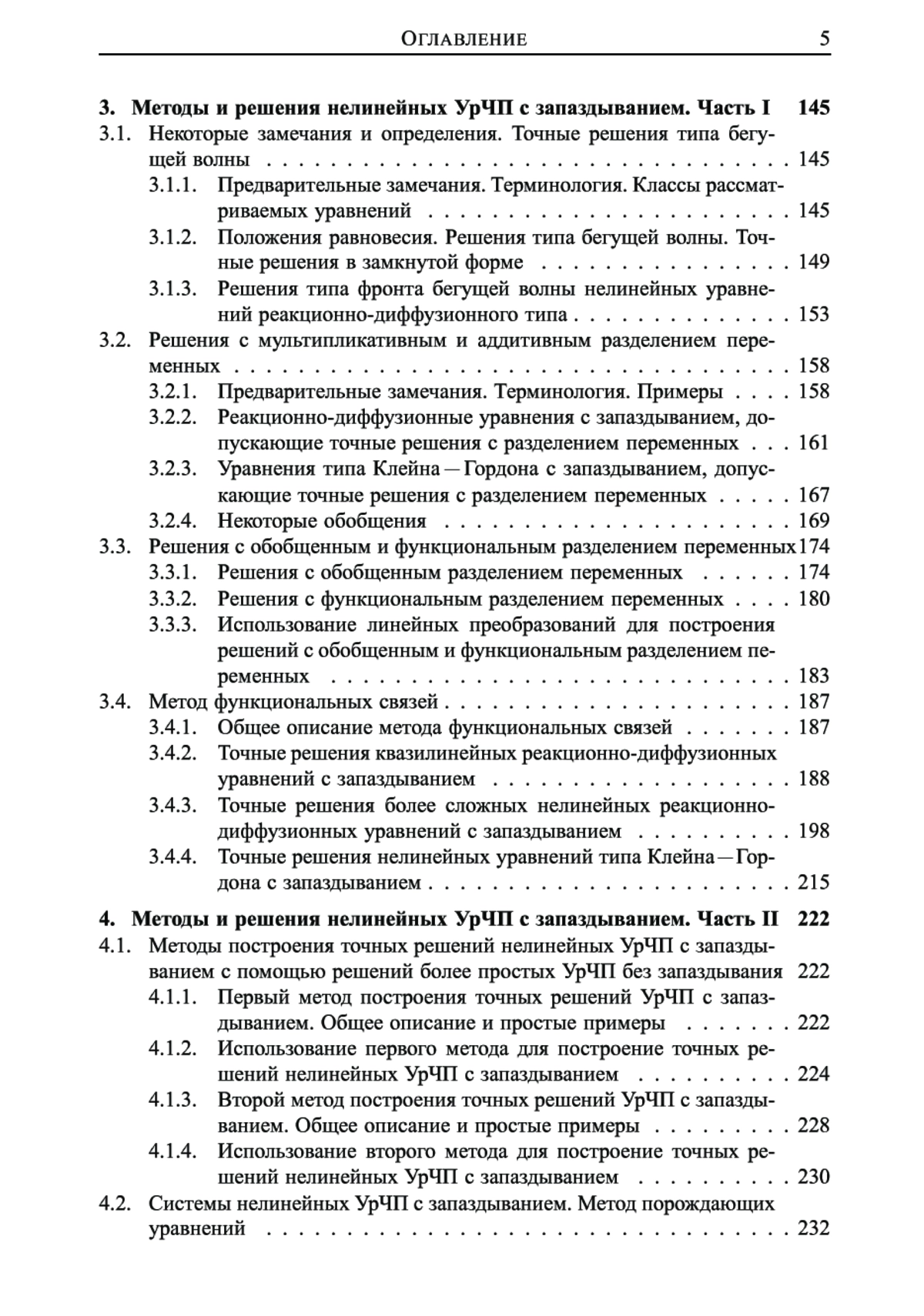 Описаны точные, приближенные аналитические и численные методы решения таких уравнений, включая метод шагов, методы интегральных преобразований, метод регулярного разложения по малому параметру, метод сращиваемых асимптотических разложений, методы итерационного типа, метод разложений Адомяна, метод коллокаций, проекционные методы типа Галеркина, методы Эйлера и Рунге—Кутты, метод стрельбы, метод прямых, конечно-разностные методы для УРЧП, методы обобщенного и функционального разделения переменных, метод функциональных связей, метод порождающих уравнений и др.