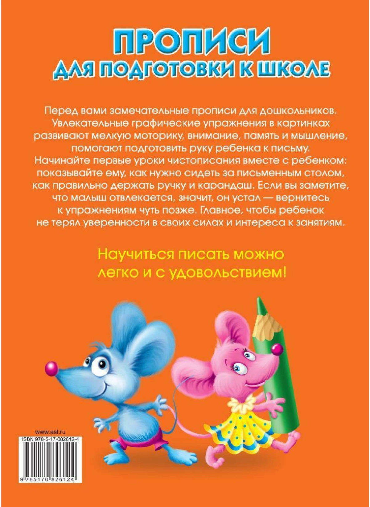 Замечательные прописи с игровыми заданиями помогут дошкольникам быстро и легко подготовиться к успешным занятиям в школе: развить необходимые графические навыки, выучить цифры и буквы, научиться считать и читать. Начинайте первые уроки чистописания вместе с малышом: показывайте ему, как нужно сидеть за письменным столом, как правильно держать ручку и карандаш. Если вы заметите, что ребенок отвлекается, значит, он устал - вернитесь к графическим упражнениям чуть позже. Главное, чтобы малыш не терял уверенности в своих силах и интереса к занятиям. Для детей старшего дошкольного возраста.