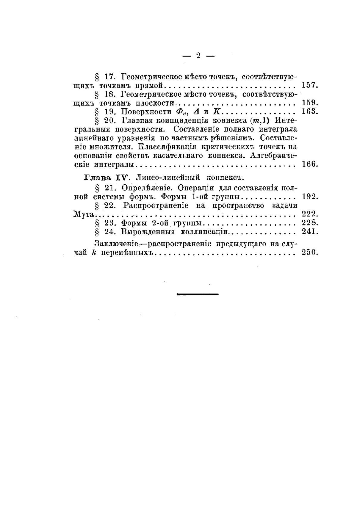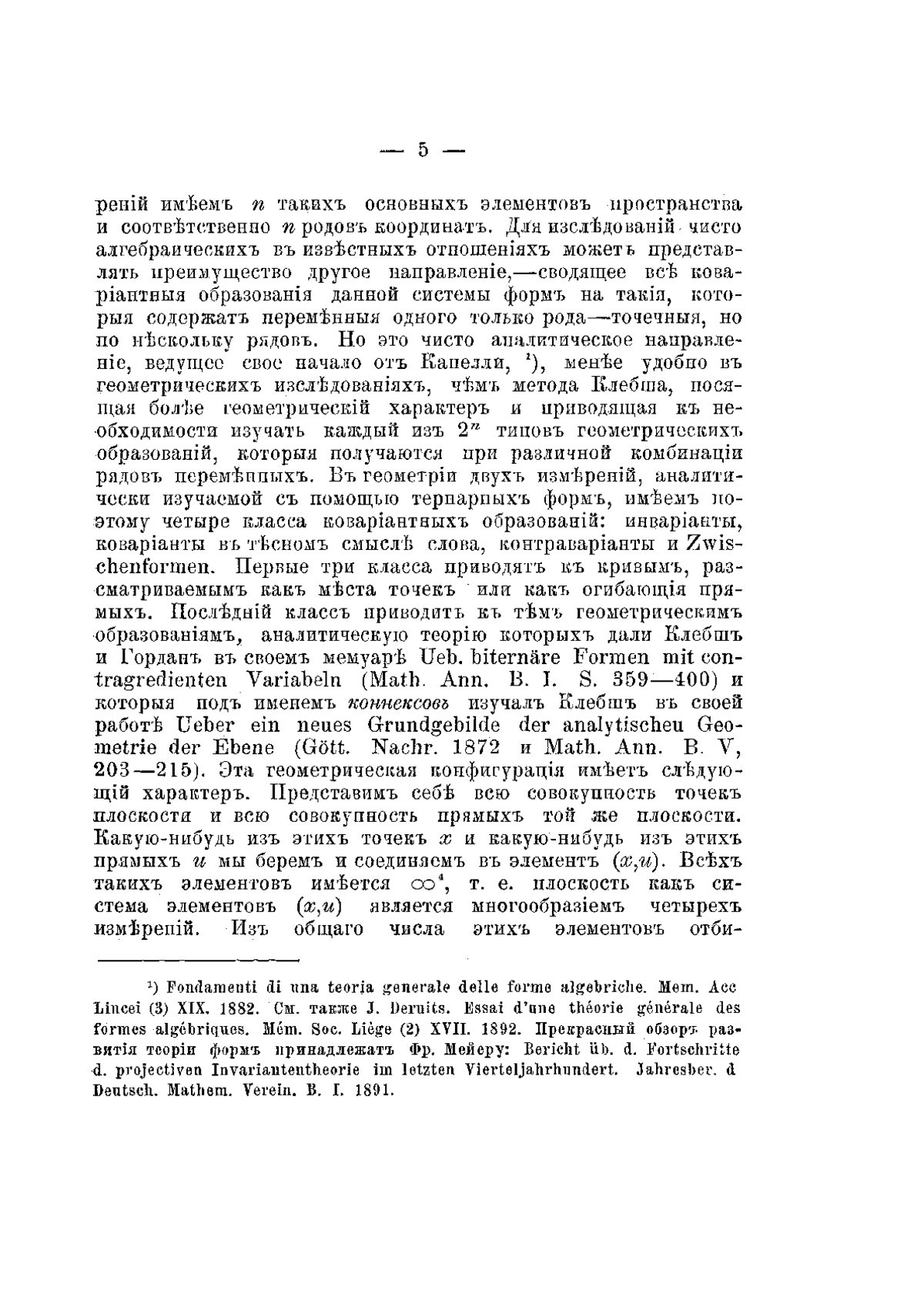 На самом деле, однако, такого полного соответствия в успехах аналитической теории и их геометрических приложений далеко не замечается. Прекрасные работы Кронекера и Вейерштрасса по теории обобщённых форм почти не получили сходных геометрических истолкований.
