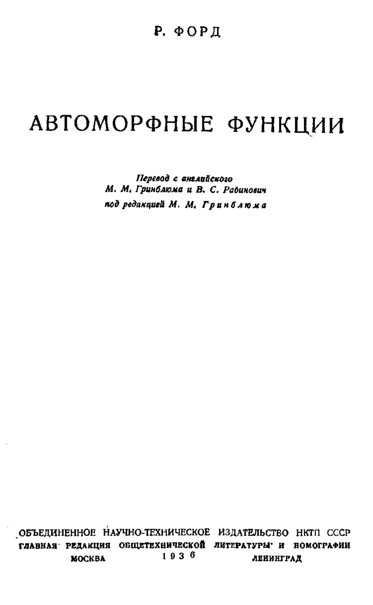 Из иностранной литературы, посвященной этому предмету, книга Форда содержит одно из наиболее свежих и в то же время наиболее доступных изложений основ теории. Автор широко использует геометрические идеи и факты. Весьма удачным следует признать систематическое использование им понятия “изометрической окружности”, позволившее упростить изложение многих пунктов теории.