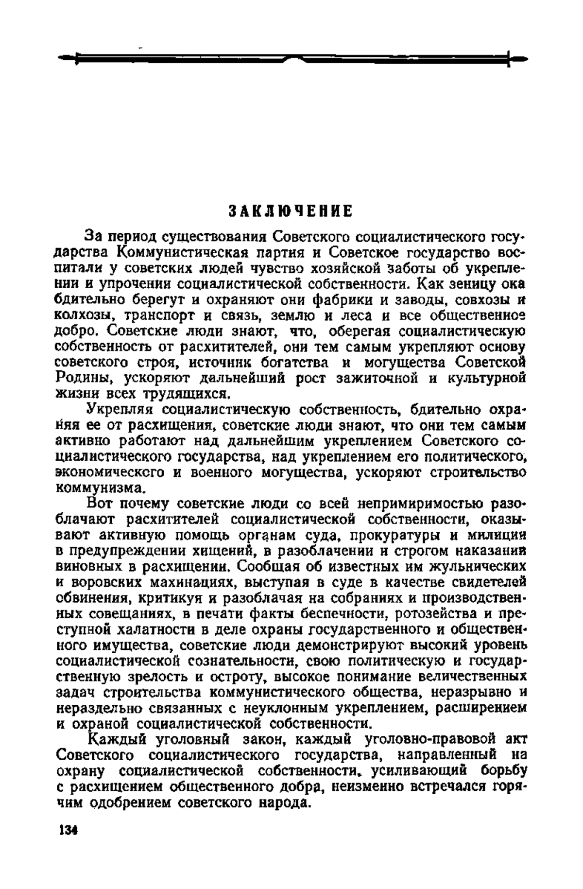 Настоящая работа посвящается вопросам уголовно-правовой охраны социалистической собственности от расхищения и является попыткой автора показать уголовно-правовую борьбу Советского государства с хищениями социалистической собственности. В работе характеризуется значение охраны социалистической собственности — экономической основы Советского социалистического государства, освещается история уголовно-правовой борьбы с хищениями социалистической собственности на различных этапах развития Советского государства и значение этой борьбы в деле осуществления Советским государством его основных функций, а также анализируется действующее советское уголовное законодательство по борьбе с хищениями и практика применения этого законодательства.