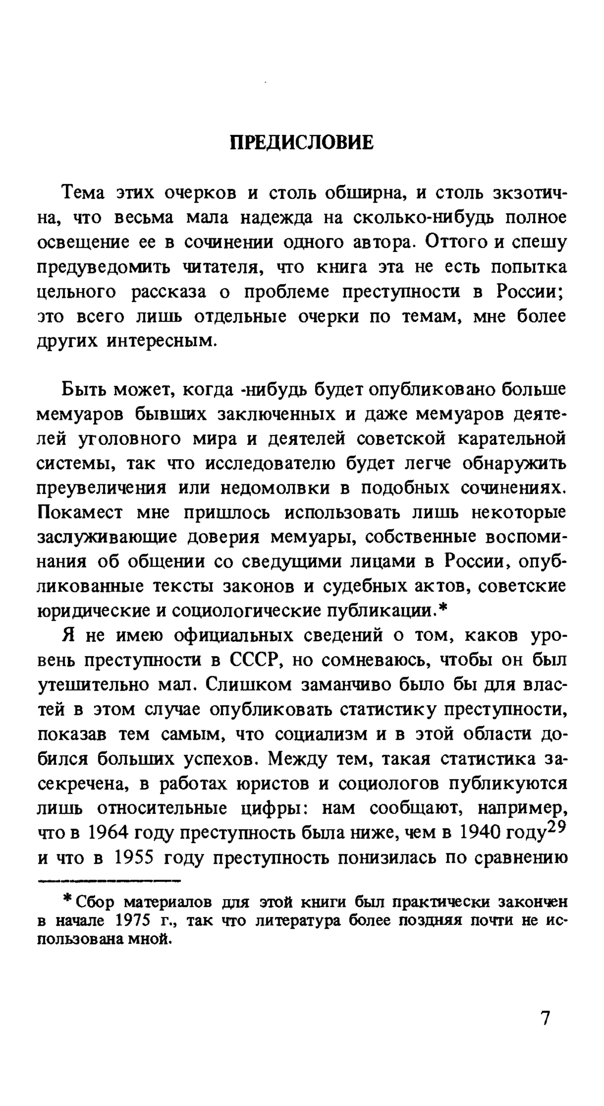 Тема этих очерков столь обширна, и столь экзотична, что весьма мала надежда на сколько-нибудь полное освещение ее в сочинении одного автора. Оттого и спешу предуведомить читателя, что книга эта не есть попытка цельного рассказа о проблеме преступности в России; это всего лишь отдельные очерки по темам, мне более других интересным. Я надеюсь, что, несмотря на неполноту предлагаемого исследования, оно поможет заполнить досадный пробел в русской социологической публицистике и, быть может, инициирует новые неподцензурные исследования в этой области.