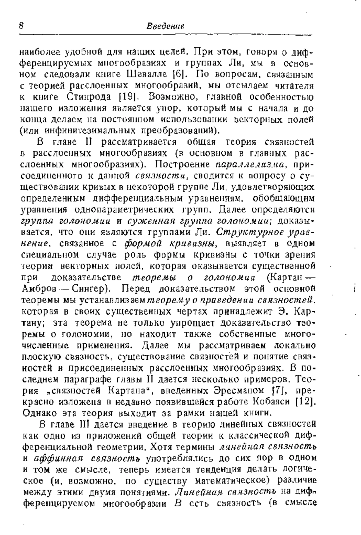 Книга Номидзу является введением в современную дифференциальную геометрию. Написана она строго, четко и сжато.