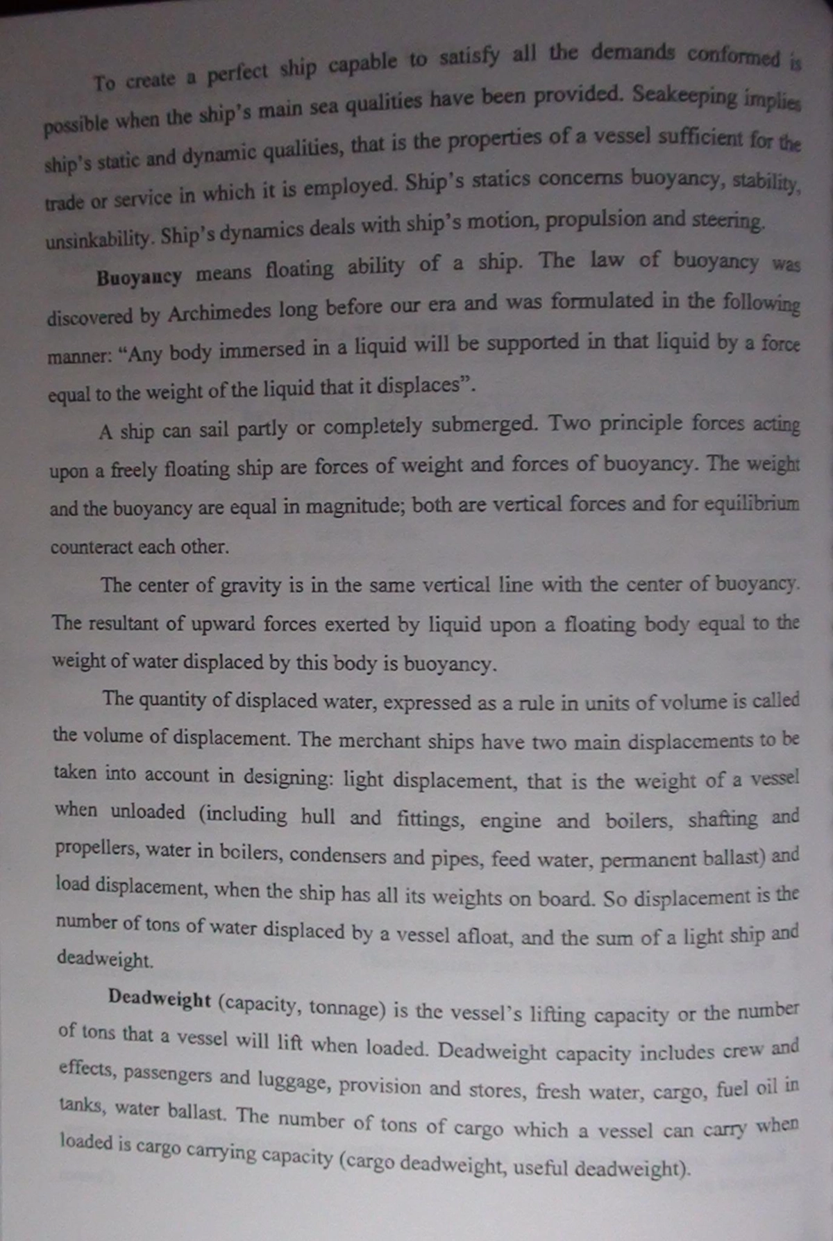 Пособие включает информацию об устройстве, мореходных качествах судов, их постройке и прочности.