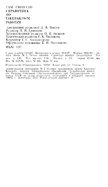 Отражает богатый опыт такелажных работ в Швеции применительно к судостроению и морской практике. Приведены основные сведения о тросах и крепежных изделиях, о новых материалах и технологии работы с тросами, работах но уходу за парусами.