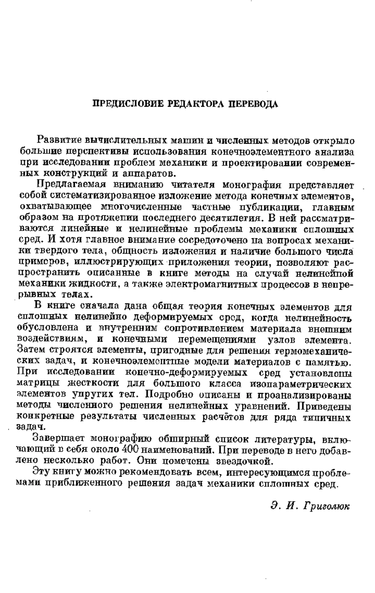 Книга посвящена систематическому изложению одного из новейших методов численного анализа — метода конечных элементов — и его приложений к широкому классу нелинейных задач механики сплошных сред и строительной механики.