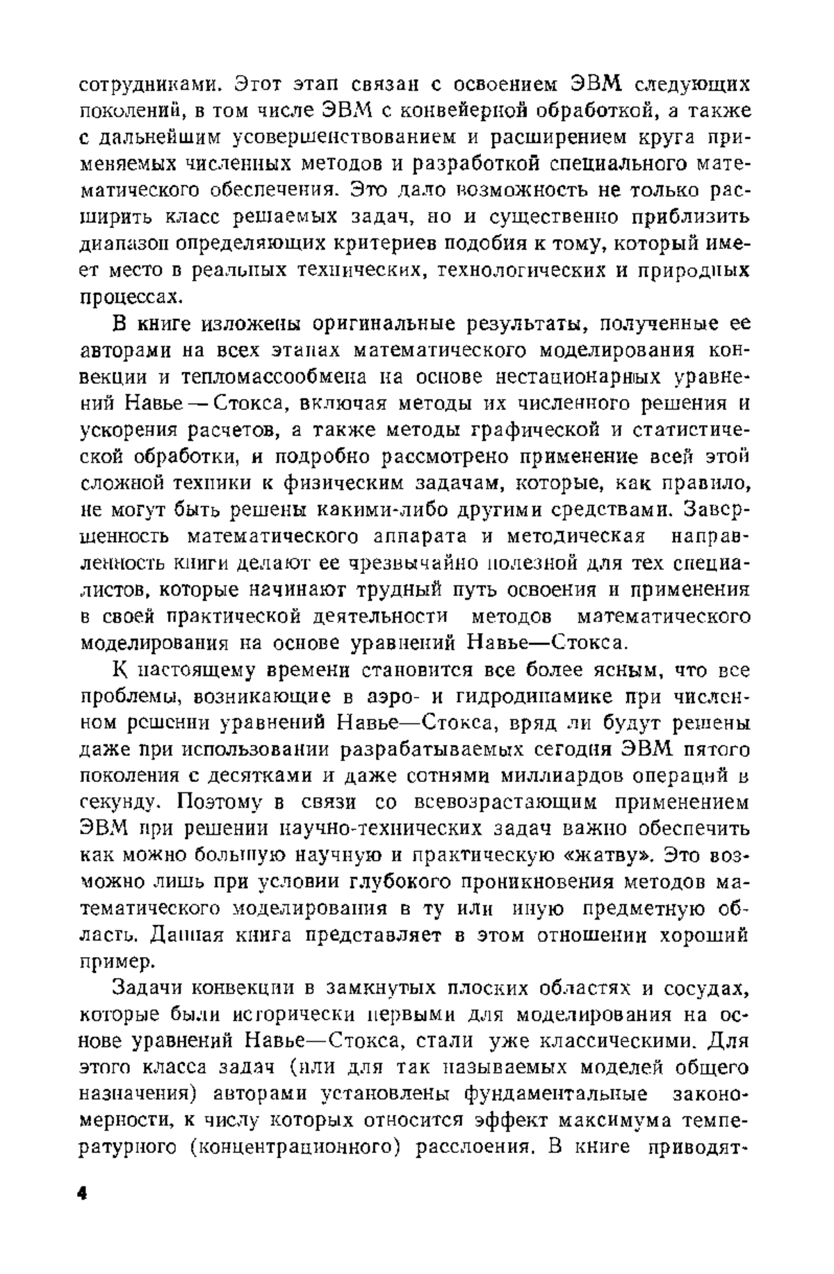 Рассмотрены методы численного решения уравнений Навье—Стокса и ускорения расчетов с помощью конвейерной обработки, методы графической и статистической обработки результатов расчетов. Изложены математические модели и результаты исследований конвекции, тепло- и массообмена для технических, технологических приложений, в геофизической гидродинамике.