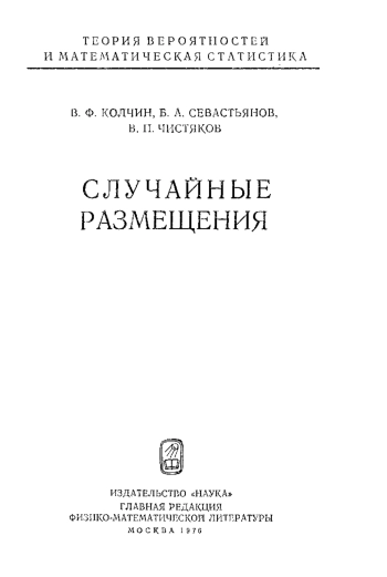 Дается систематическое изложение интенсивно развивающегося в течение последних десяти лет направления в теории вероятностей, связанного со случайными размещениями. Исследуются асимптотические свойства законов распределения числа ячеек с заданным числом частиц в различных схемах размещения частиц по ячейкам. Для растущего числа частиц и ячеек дан весь спектр предельных теорем.