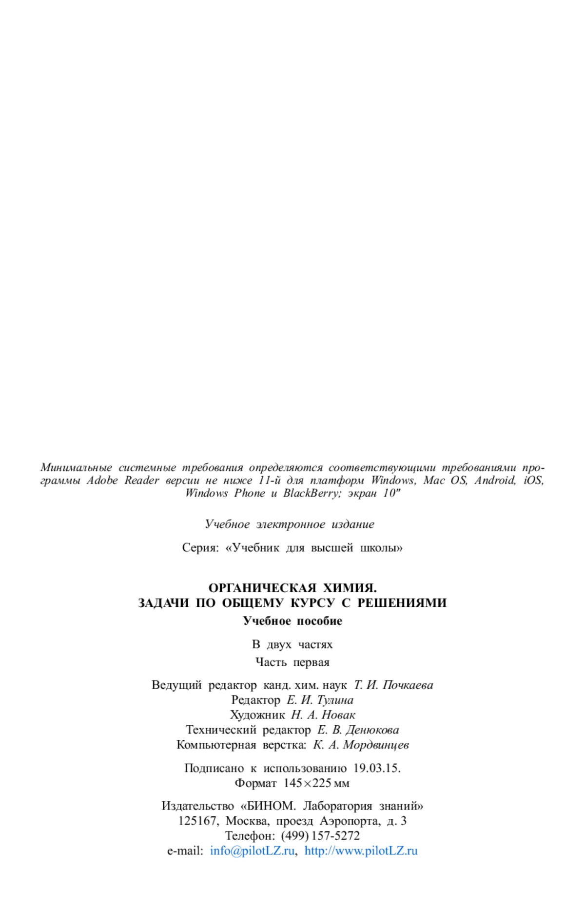 Реклама apple-avenue. ru Смартфон Apple iPhone 16 128Gb (Pink) 67 550 ₽ Узнать больше Органическая химия. Задачи по общему курсу с решениями. В учебном издании, составленном на основе многолетнего опыта преподавания органической химии на химическом факультете МГУ им. М. В. Ломоносова, приведено около 1200 задач и вопросов по большинству разделов современного вузовского курса органической химии согласно учебной программе. Особое внимание уделено развитию навыков анализа строения органических соединений и практике оценки влияния структурных факторов на реакционную способность соединений, а также привлечению стереохимических представлений при обсуждении механизмов органических реакций. В пособии 17 глав. В первой части приведены условия задач и вопросы. Для студентов химических вузов, аспирантов и преподавателей.