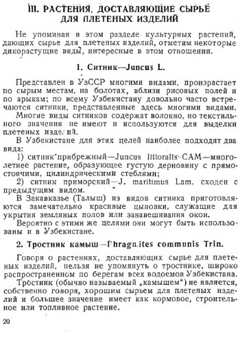 Узбекистан, с его богатейшей естественной растительностью, простирающийся от знойных пустынь до холодных высокогорий, обладает огромными сырьевыми ресурсами, пригодными для промышленного использования. Целью настоящей брошюры является подведение основных итогов изучения дикорастущих волокнистых растений Узбекистана, выявление путей их использования, запасов сырья и условий заготовок. Это поможет ориентировать внимание хозяйственных организаций на использование наиболее перспективных растений, а исследователей — на изучение малоизвестных, но интересных волокнистых видов.