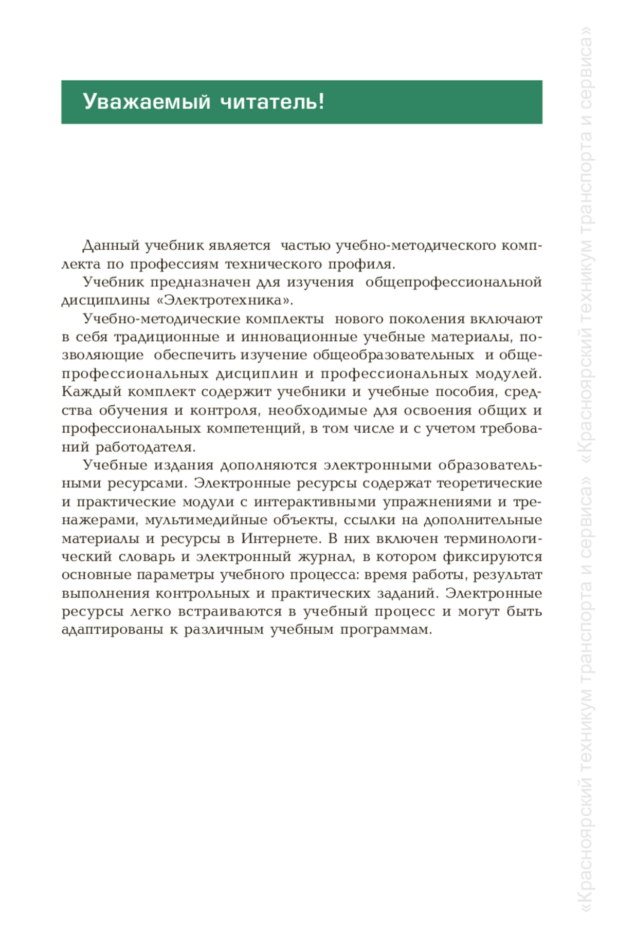 Учебник может быть использован при изучении общепрофессиональной дисциплины «Электротехника» в соответствии с ФГОС СПО для профессий технического профиля. Для студентов учреждений среднего профессионального образования.