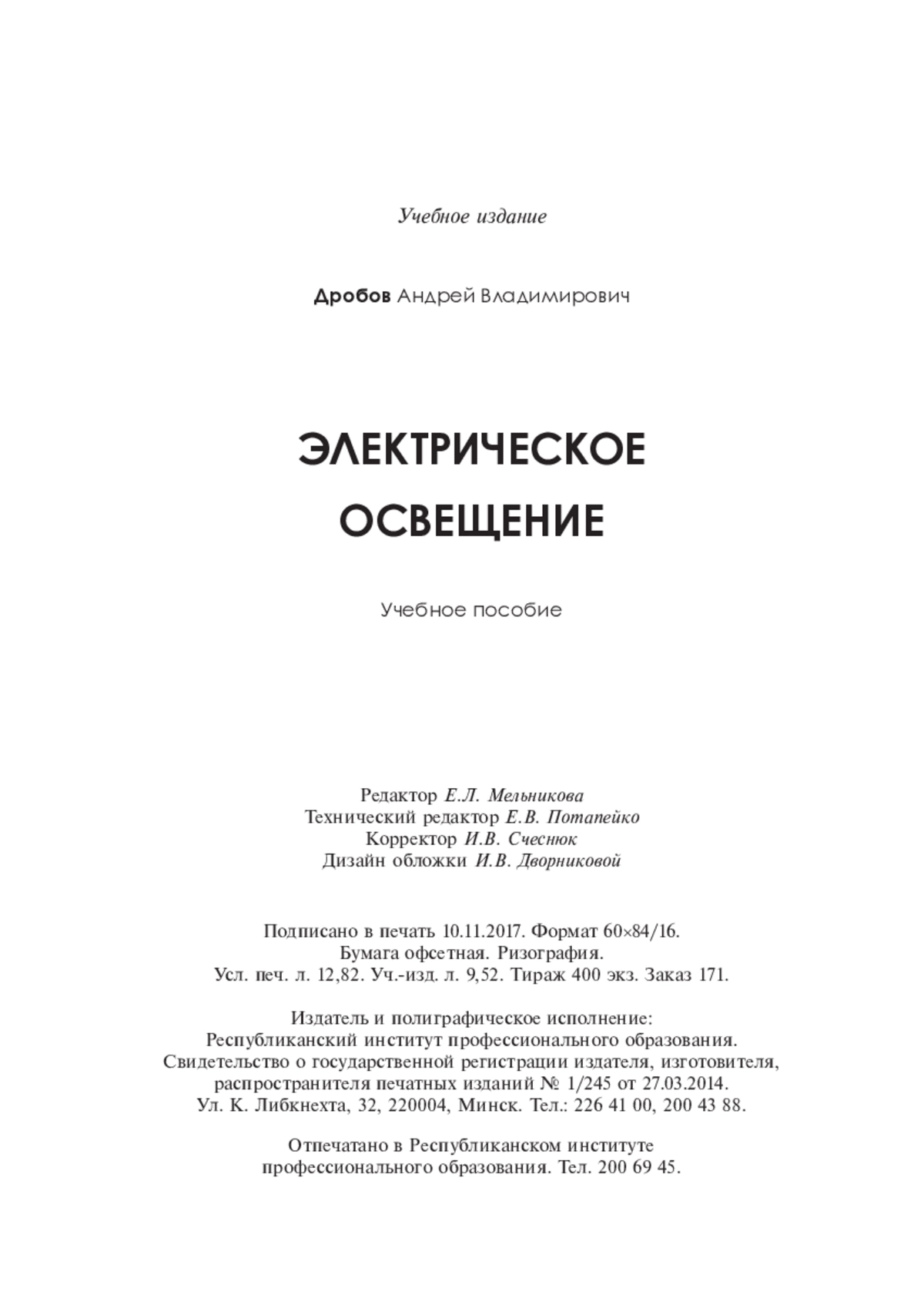 Изложены основы нормирования и проектирования осветительных установок, выбора источников света, светильников и способов их размещения, рассмотрены методы расчета электрического освещения. Иллюстрации, примеры и контрольные вопросы помогут обучающимся в изучении материала пособия.