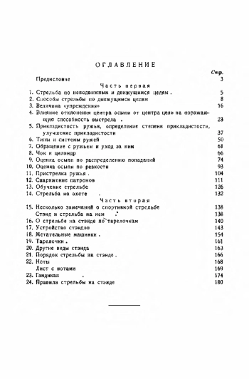 «Революция сделала охоту доступной всем гражданам СССР. Охотничья страсть, свойственная человеку, подавляемая ранее ограничительными законами об охоте, нашла себе выход, и ряды охотников непрерывно множатся и растут. Развивается и спортивная дробовая стрельба—прекрасная подготовительная школа для стрельбы пулевой, необходимая для формирования стрелка-бойца, разведчика и снайпера. Можно считать твердо установленным, что хороший дробовой стрелок весьма быстро осваивается со стрельбой пулевой и достигает в ней, особенно в стрельбе по движущимся и появляющимся целям, больших успехов, тогда как, обратно, пулевой стрелок, специализировавшийся на выбивании очков, с трудом осваивается со стрельбой охотничьего типа, а для дробовой стрельбы оказывается нередко испорченным безнадежно…»