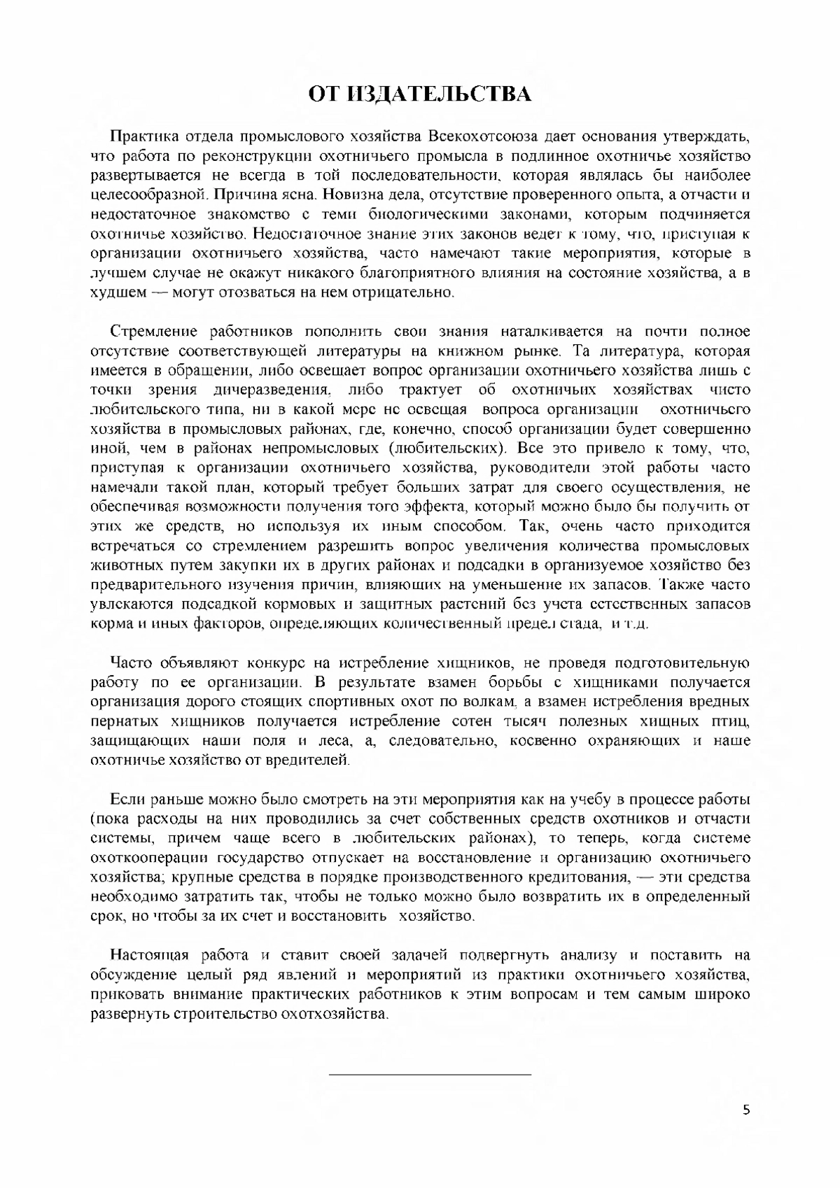 «Охотничье хозяйство занимает далеко не последнее место в общем балансе нашего народного хозяйства. Помимо этого, что пушнина играет значительную роль в нашем экспорте, охота является одним из основных источников существования многих туземных народностей нашего Севера. Состояние охотничьего хозяйства определяет не только уровень их благосостояния, но зачастую и самую возможность существования…»