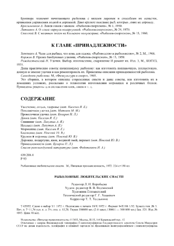 Ужение — древнейший вид спорта. Сохранились каменные и костяные крючки и блесны, которым насчитывается несколько тысяч лет. Известно, что римляне устраивали конкурсы ловли рыбы, которые привлекали многочисленных участников. В книге описаны рыболовно-спортивные снасти, применяемые рыболовами-любителями. Дана характеристика и устройство поплавочных и проводочных удочек, донок, спиннингов и др., выпускаемых не только промышленностью, но и самодельных. Рассказано о видах ловли с практическими советами и рекомендациями, в том числе описаны различные виды принадлежностей.