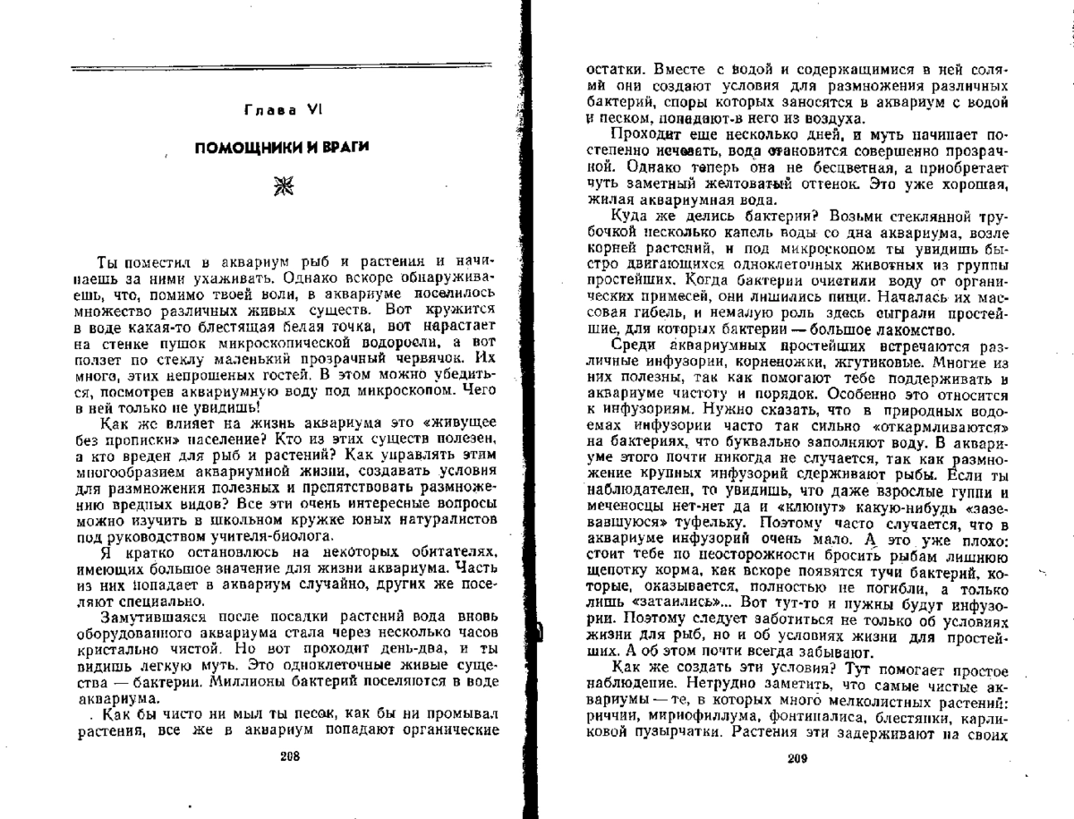 Прозрачная вода, разноцветная галька на дне, леса подводных растений, то изумрудных, то синевато-зелёных, то бурых, матовых, с фиолетовой шапкою листьев. И всюду рыбы: чёрно-огненные стрелки — нанностомусы, полосатые данио, пучеглазые телескопы, широкие полумесяцы — скалярии. Сквозь стеклянные берега аквариума мы смотрим на них точно во время подводной охоты — сбоку и снизу, — и жители его показывают нам всю свою красоту. Такой подводный мир может быть и у тебя дома. О том, как создать его, расскажет эта книга; она научит тебя, как правильно содержать и разводить рыб, а юному аквариумисту-селекционеру книга подскажет, как сделать рыб особенно яркими и красивыми.