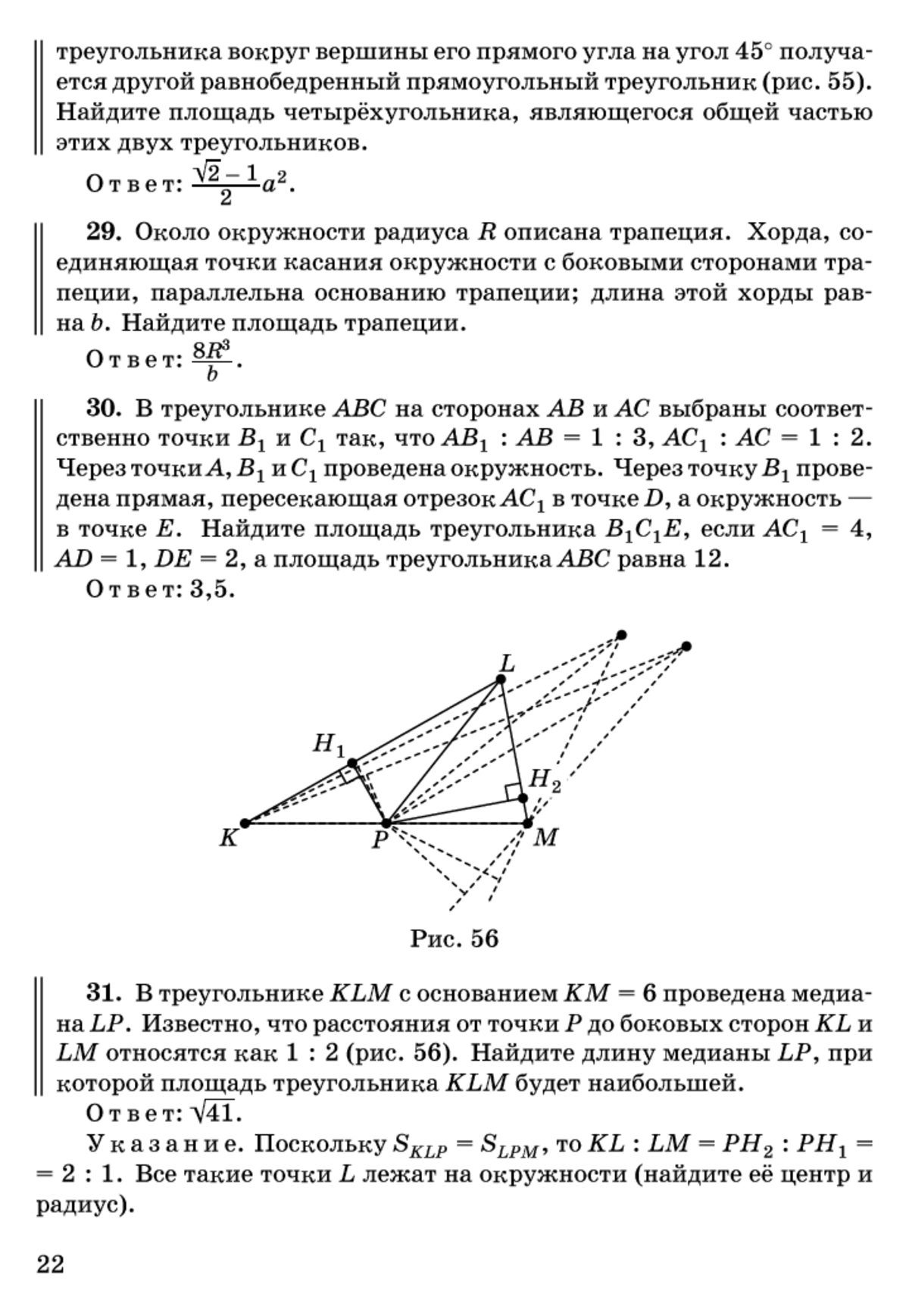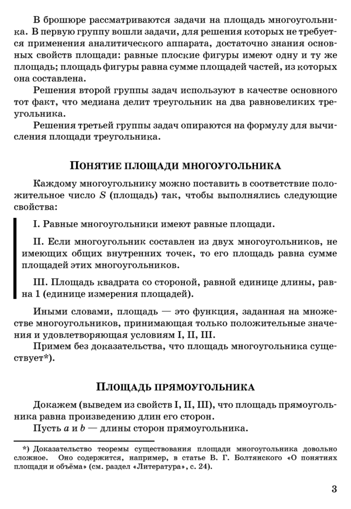 Брошюра посвящена вычислению площадей прямоугольника, треугольника, параллелограмма, трапеции и других многоугольников. Рассмотрены решения 20 задач, сгруппированных вокруг следующих вопросов: