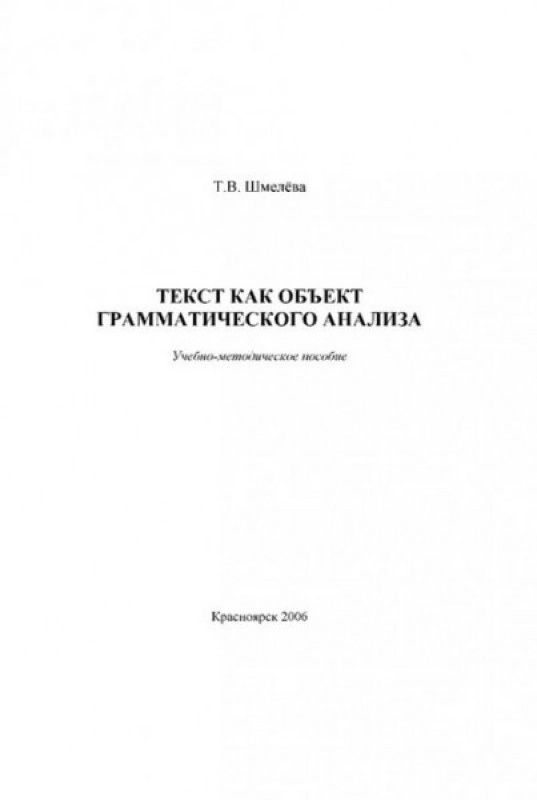 Текст как объект грамматического анализа: учеб.-метод. пособие Т.В. Шмелёва; Краснояр. roc. ун-т. - Красноярск, 2006. - 63. (экспресс издание)